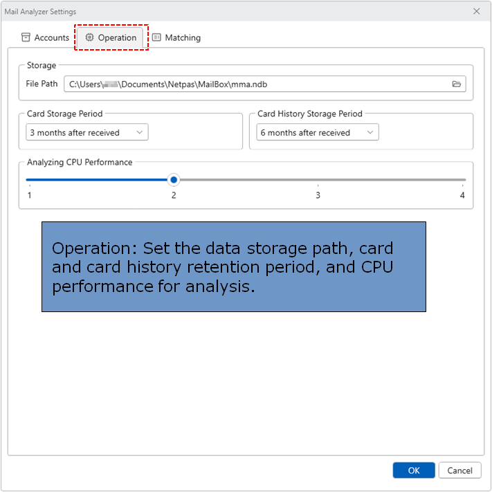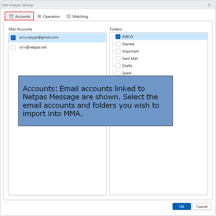 4. Setting: Configure your Mail Account, Operation, and Matching Information.