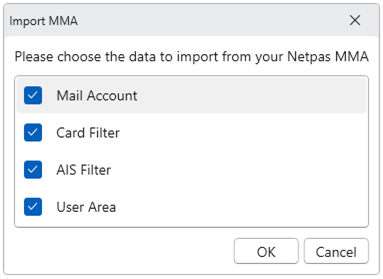 5. Import MMA: You can import your Mail Accounts, Card & AIS Filters and User Area from your existing MMA account, if any. Select the item you want to import.