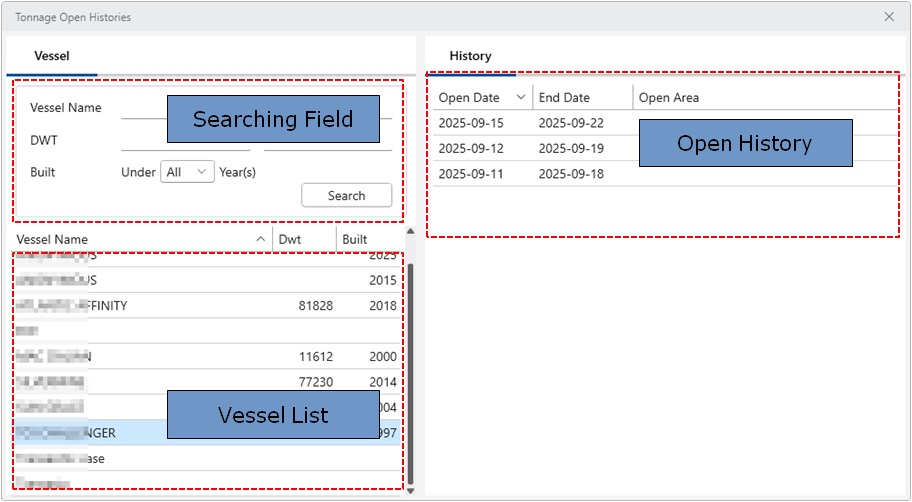 3. Tonnage Open History: Shows each vessel’s tonnage open history at a glance.