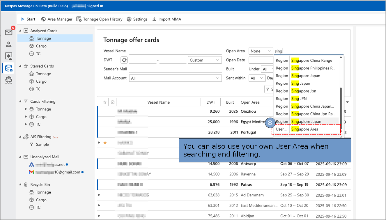 Your areas can be saved and used for searching and filtering.